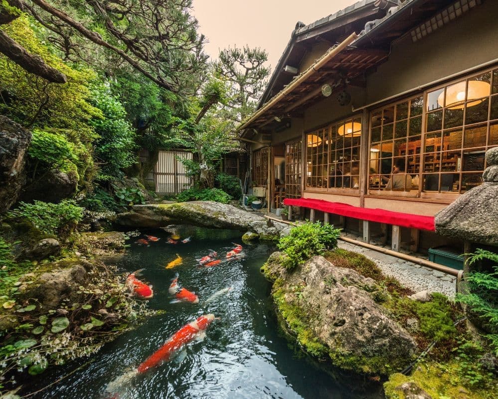 Nei ryokan gli ospiti sono tenuti a togliere le scarpe all’ingresso, riponendole nelle apposite scansie, e a utilizzare le pantofole messe a disposizione dalla struttura, che fornisce inoltre lo yukata (kimono in cotone). Le camere tradizionali, con pavimento in tatami, sono ambienti semplici e spogli, arredati con tavolo basso e sedute. Il personale provvede a predisporre i futon per la notte, stendendoli sul tatami. Le camere in stile giapponese/occidentale sono invece dotate di letti. I pasti, basati sulla cucina giapponese, possono essere serviti al ristorante (nei ryokan meno tradizionali) oppure direttamente in camera. Molti ryokan dispongono di onsen (vasche termali) con accesso separato per uomini e donne. L’accesso è consentito esclusivamente senza indumenti ed è subordinato a un’accurata pulizia personale preliminare.